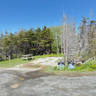 The immediate view is a bit boring, but there's a large pond you can walk down to that's prettier once you get there. However, with so much spectacular water everywhere in Newfoundland, we'd never bother sitting down at this pond.