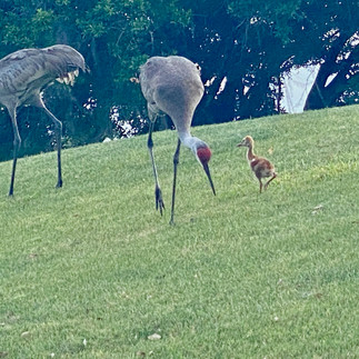 Florida Sandhill Cranes – These elegant, long-legged birds mate for life and can live 30-40 years. Watching parents guide their fluffy, golden-brown chicks across the greens is a heartwarming sight.
